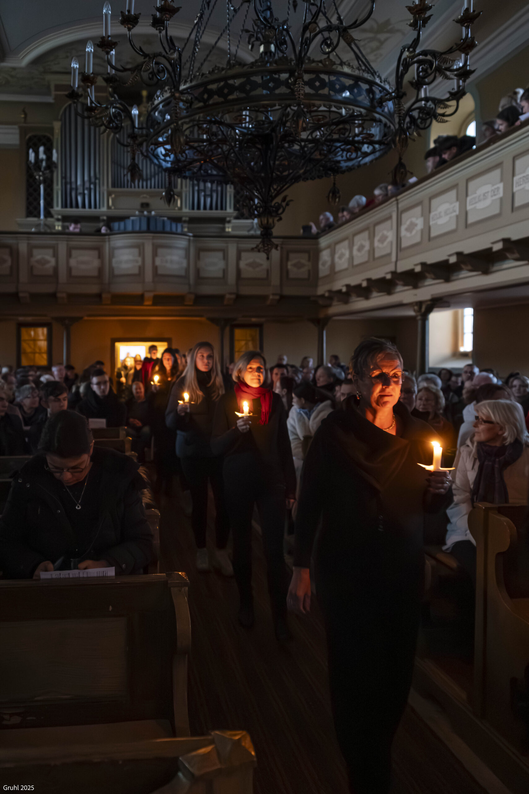 Der Chor nahm das Publikum mit auf eine Reise durch die Nacht: mit Werken von Dietrich Buxtehude, John Rutter, Udo Jürgens, Heinrich Schütz, Stefan Jänke, Giuseppe Verdi und Filmmusik aus „Die Kinder des Ms. Matthieu“, mit Abendliedern und Kanons, mit Kantate und Doppelchor.