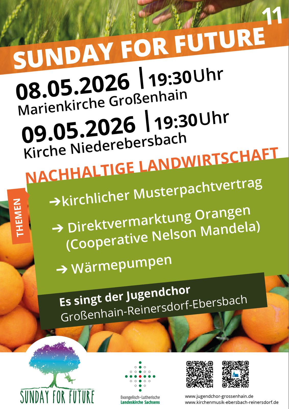 Anlässlich der „Earth Hour“ war die Frühjahrs-Ausgabe von „Sunday For Future“ als Konzert geplant: Dem Motto getreu „Licht aus – Stimme an – für mehr Klima- und Umweltschutz“ sang der Eltern-LehrerInnen-Ehemaligen-Chor des Netzwerks Kinderchöre ein Programm unter dem Titel „Nachtgesang“. Die einleitenden Worte sprach Pfarrer Johannes Czenthe, die Leitung des Konzertes hatte Stefan Jänke, als musikalische Gäste waren Anett Ziller (Sopran) und Helene Vogel sowie Sarah Marie Scholta (Violine) dabei.