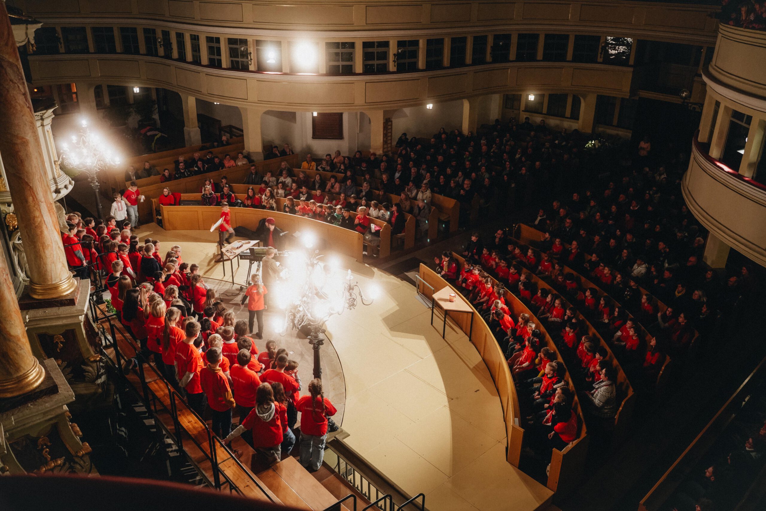 Eine besondere Einladung hatten vorab schon SängerInnen aus vier Kinderchören erhalten (Kindergartenchor des Christlichen Kindergartens St. Katharina Großenhain, Kindergartenchor der Kleinen Strolche in Wildenhain, Chorklasse 3 der 1. Grundschule Großenhain und der Kurrende der Marienkirche Großenhain). Die Kinder hatten sieben Lieder vorbereitet, um sie unter Leitung von Stefanie Hendel und gemeinsam mit dem Eisbären zu trällern.